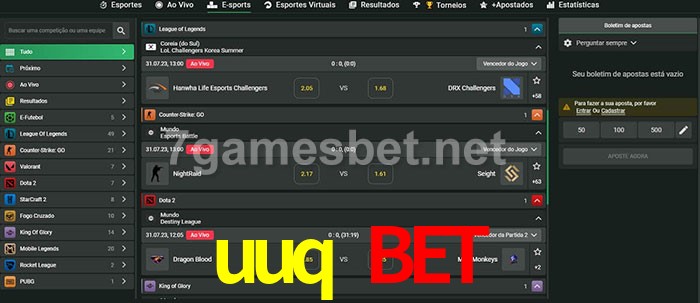 O uuq bet oferece uma grande seleção de opções de apostas em e-sports com probabilidades competitivas